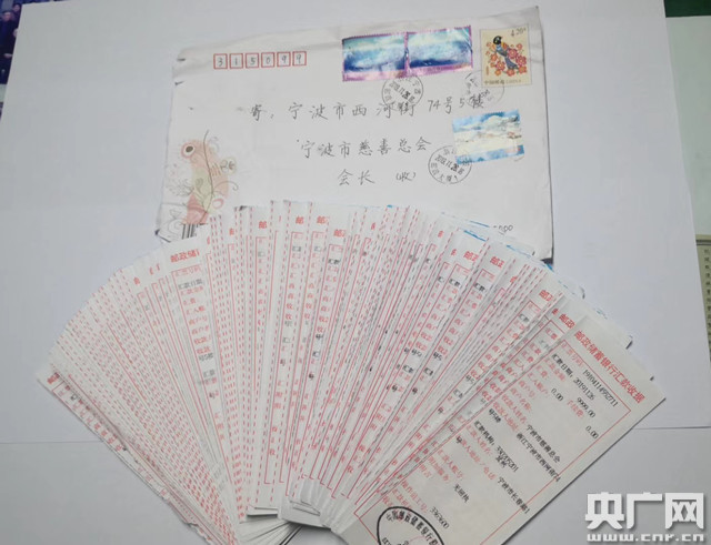 今天,寧波慈善總會(huì)收到一份掛號(hào)信,工作人員打開一看是厚厚的一沓匯款收據(jù),署名為“其然”?吹竭@里,工作人員知道老朋友“順其自然”又來了。細(xì)細(xì)一數(shù),共103張匯款單,101張是9999元,1張50元,1張51元。分別是從寧波市海曙區(qū)郵政大廈營(yíng)業(yè)所匯款50萬元,郵儲(chǔ)銀行寧波分行匯款51萬元,都是11月26日匯出。與以往一樣,“順其自然”將103張匯款收據(jù)寄給寧波慈善總會(huì),信上地址為長(zhǎng)春路1號(hào)。