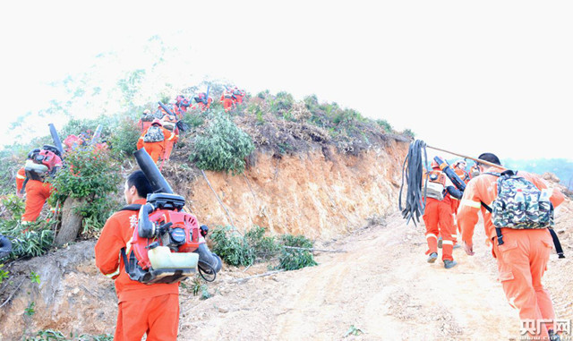 此時,前線現(xiàn)場指揮部已調(diào)動肇慶市德慶、封開、廣寧等縣專業(yè)森林消防隊伍趕赴現(xiàn)場撲救,但火場風(fēng)力較大,山勢陡峭,火勢較猛,省應(yīng)急管理廳又從江門市、廣州市花都和從化、清遠(yuǎn)市英德和清新調(diào)度5支專業(yè)森林消防隊伍增援。6時30分,所有隊伍共計約600人全部集結(jié)。