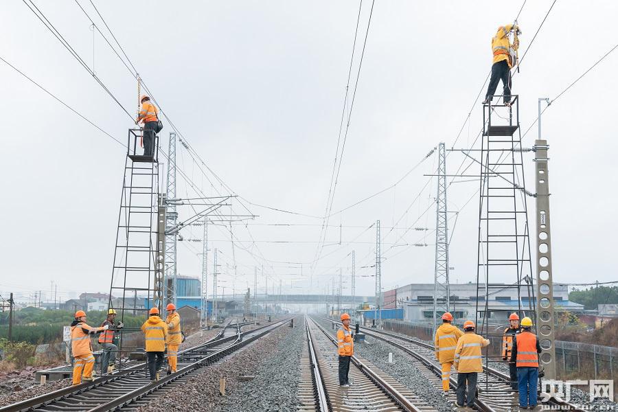 12月19日,鐵路部門工作人員檢查設備整改情況(央廣網(wǎng)發(fā) 杭州供電段供圖)