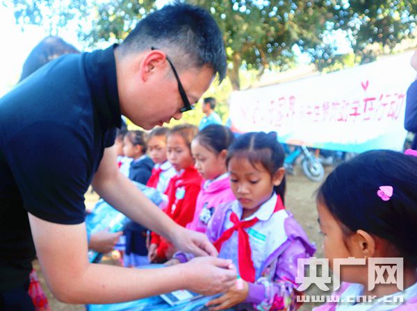 愛心人士向老撾貧困學(xué)生捐贈(zèng)書包等學(xué)習(xí)用品(央廣網(wǎng)發(fā) 姚英攝)