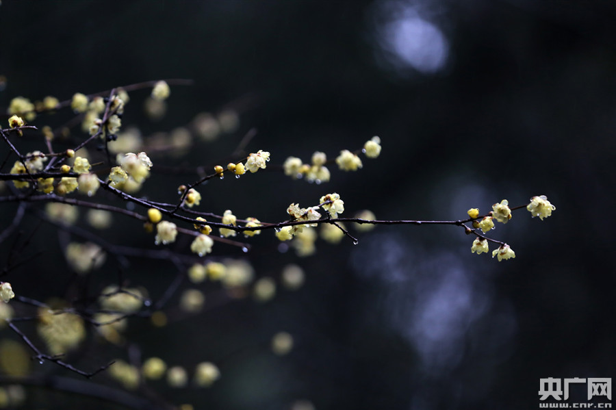 央廣網(wǎng)杭州1月5日消息(記者魏煒)“墻角數(shù)枝梅,凌寒獨(dú)自開(kāi)。遙知不是雪,為有暗香來(lái)!1月4日,杭州植物園內(nèi)靈峰臘梅在寒冬中傲然開(kāi)放,淡黃色的半透明花瓣在雨中層層綻放,暗香浮動(dòng),散發(fā)出沁人心脾的淡淡清香。