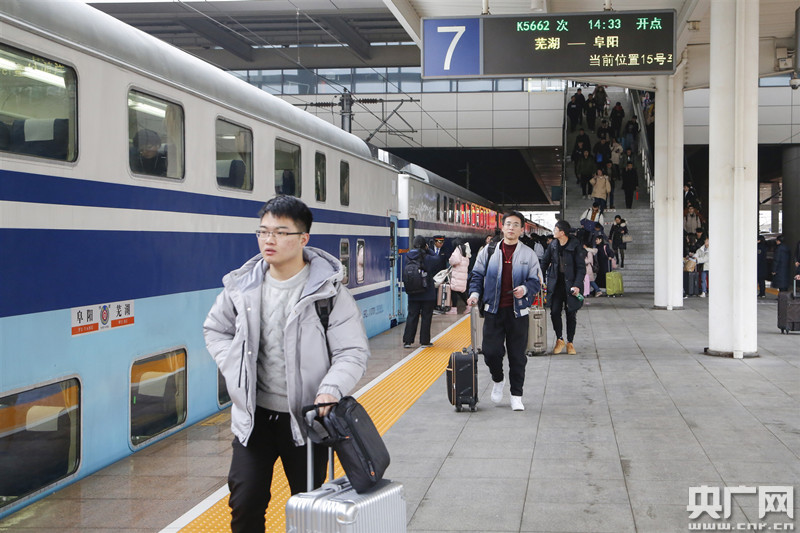 K5662次列車(chē)蕪湖站始發(fā)放客(央廣網(wǎng)發(fā) 吳新毅 攝)