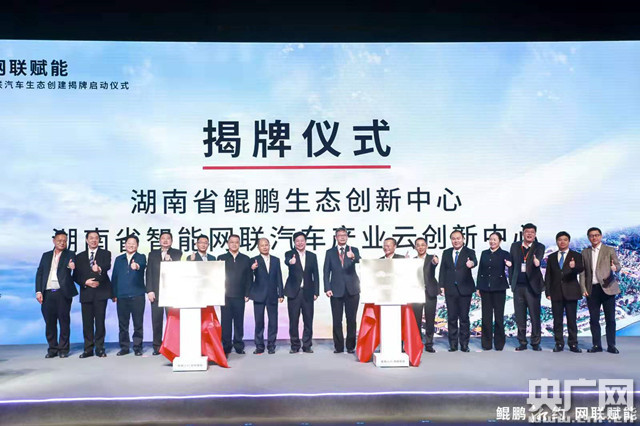 儀式中,湖南省鯤鵬生態(tài)創(chuàng)新中心、湖南省智能網(wǎng)聯(lián)汽車產(chǎn)業(yè)云創(chuàng)新中心先后揭牌。