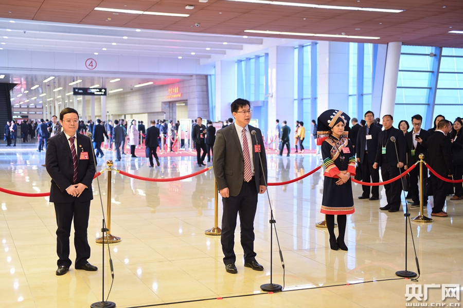 廣東省十三屆人大三次會(huì)議首場(chǎng)“代表通道”14日上午開啟。(央廣網(wǎng)記者官文清 攝)