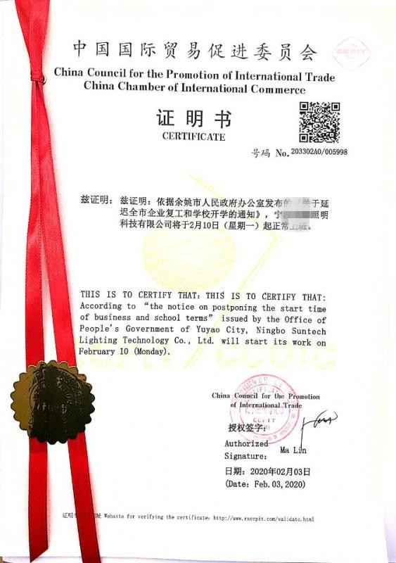 央廣網(wǎng)寧波2月4日消息(記者曹美麗 杜金明 通訊員俞永均)2月3日上午,寧波市貿(mào)促會為寧波余姚某照明科技有限公司簽發(fā)了寧波市首份新型冠狀病毒肺炎疫情不可抗力事實(shí)性證明書。