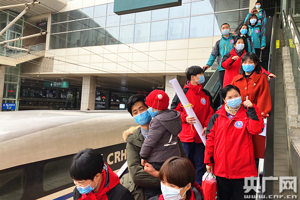 醫(yī)療隊(duì)搭乘高鐵前往武漢(央廣網(wǎng)記者 堯遙 攝)
