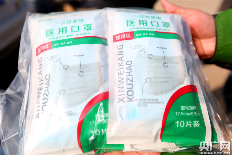 康迪醫(yī)療用品有限公司生產(chǎn)的口罩。(央廣網(wǎng)記者唐磊 攝)