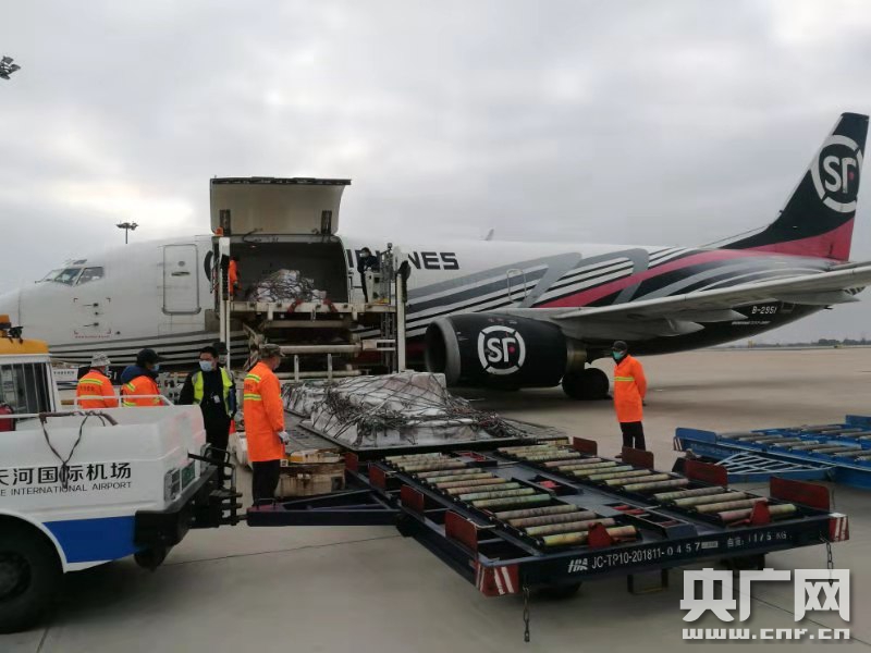 貨機(jī)抵達(dá)武漢天河機(jī)場(央廣網(wǎng)發(fā) 寧波機(jī)場供圖)