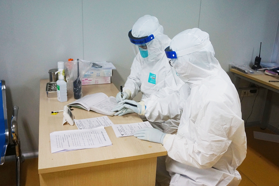關(guān)員登記境外確診新冠肺炎出院后入境旅客及其同行人流行病學(xué)調(diào)查信息(攝影:黃孝洵)