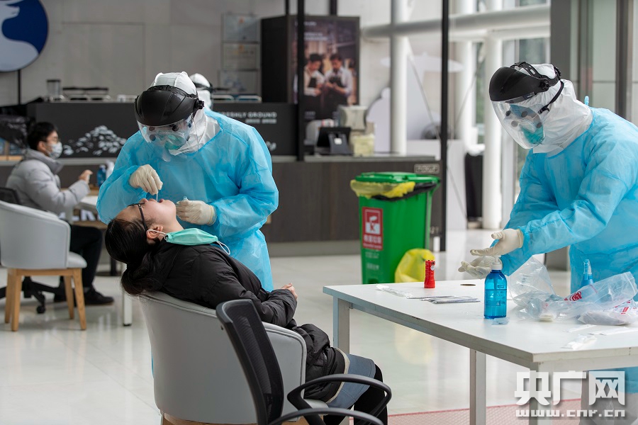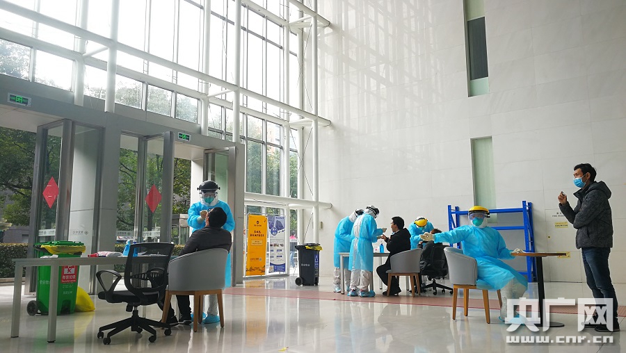 寧波一家地產(chǎn)公司的員工正在做核酸檢測(cè)(央廣網(wǎng)記者 杜金明 攝)