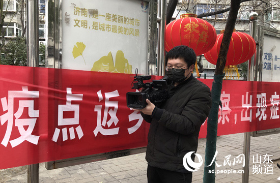 離我近的,是我們?nèi)嗣窬W(wǎng)的同事劉祺,一名全媒體記者,在抗擊疫情戰(zhàn)斗中,肩負山東“戰(zhàn)場”前線的報道任務(wù)。