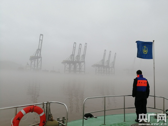 在大榭港區(qū),海事執(zhí)法人員當起了“海上快遞小哥”。15日一大早,他們將蔬菜、水果、米面等一批“貨物”扛上了“海巡07132”艇的甲板。趁著海上濃霧終于有了減弱的勢頭,能見度一達到安全出艇的條件,就立刻出發(fā)“送貨”!斑@兩天受到濃霧和寒潮大風的影響,海域天氣情況不太好,我們要抓緊霧和風都相對較小的‘窗口期’,把物資趕緊送到船上,不能讓船員兄弟們久等!”寧波大榭海事處榭北海巡執(zhí)法大隊大隊長李宣達說。