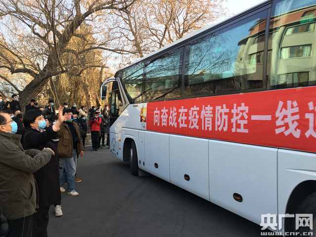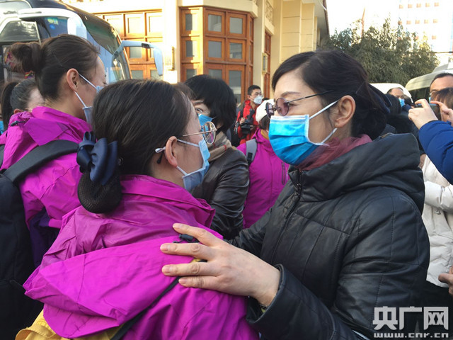 醫(yī)療隊員所屬醫(yī)院的工作人員也前來送行(央廣網(wǎng)記者 張磊 攝)