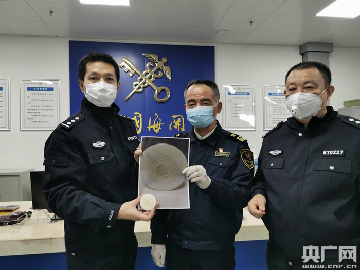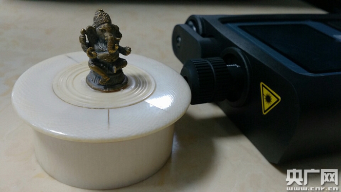 該快件物品申報(bào)品名為“餐具蓋”“瓷盤(pán)”“瓷杯”各1件。關(guān)員開(kāi)箱查驗(yàn)發(fā)現(xiàn),包裹內(nèi)有瓷杯、瓷盤(pán)及一個(gè)牙白色的小盒子。經(jīng)過(guò)肉眼判斷,申報(bào)為“餐具蓋”的物品符合象牙制品一般特征,遂進(jìn)一步使用物像識(shí)別儀進(jìn)行檢測(cè),經(jīng)多次不同角度檢測(cè),均提示為“象牙”。2月14日,經(jīng)華南野生動(dòng)物物種鑒定中心專(zhuān)業(yè)鑒定,認(rèn)定為象牙制品,凈重40克。目前該案件已移交緝私部門(mén)作進(jìn)一步處理。
