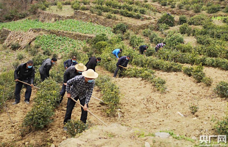 2月8日,白河縣中廠鎮(zhèn)新營(yíng)村600畝的茶園和800畝的木瓜園里迎來了一批“口罩”農(nóng)民,為避免人員聚集,村支書陳錦兵給每人劃分了一塊區(qū)域,并安排村組干部負(fù)責(zé)每天給群眾量體溫、消毒工具,監(jiān)督勞作群眾戴好口罩、保持作業(yè)距離、分散就餐等。