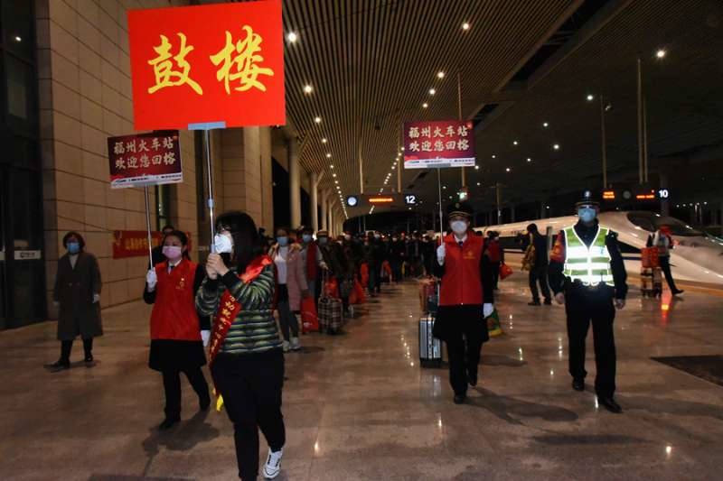為確保這批復(fù)工人員順順利利出站、平平安安回到企業(yè),福州市人力資源和社會(huì)保障局協(xié)同福州火車站開展了點(diǎn)對(duì)點(diǎn)服務(wù)。福州火車站組建了一支15人的黨團(tuán)員青年突擊隊(duì),在站臺(tái)上做好這批務(wù)工人員的出站引導(dǎo),并開辟了2個(gè)務(wù)工人員專用通道出站。
