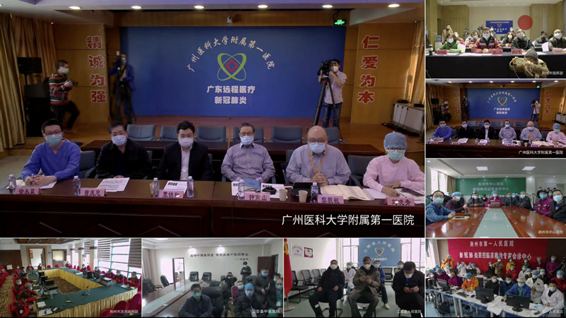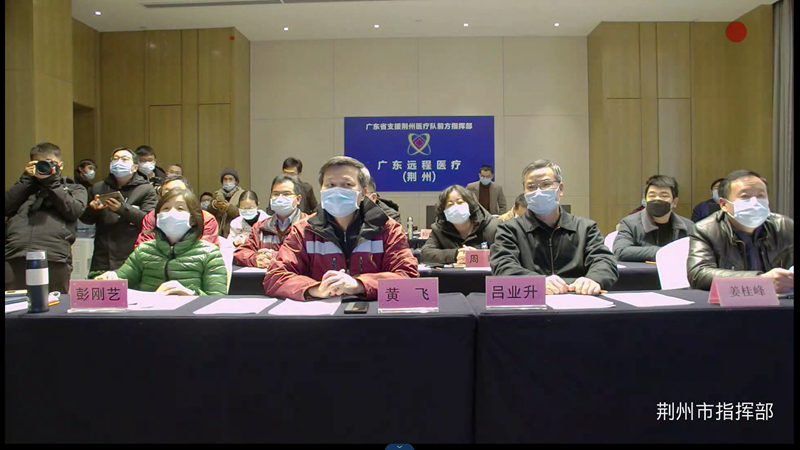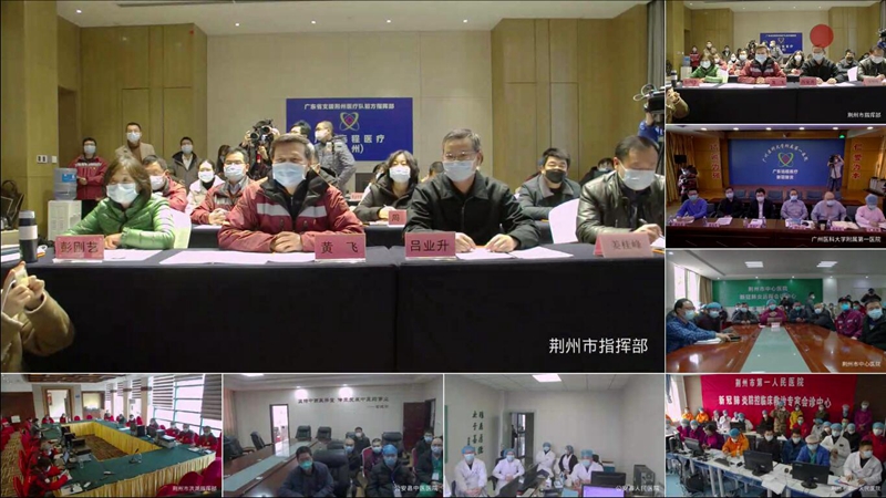 此次遠(yuǎn)程會(huì)診主會(huì)場(chǎng)設(shè)在廣東支援湖北荊州醫(yī)療隊(duì)前方指揮部、廣州醫(yī)科大學(xué)附屬第一醫(yī)院兩地,分會(huì)場(chǎng)分別設(shè)在荊州市中心醫(yī)院、荊州市第一醫(yī)院、公安縣人民醫(yī)院、公安縣中醫(yī)院、監(jiān)利縣人民醫(yī)院、江陵縣人民醫(yī)院、石首市中醫(yī)院、洪湖市人民醫(yī)院、松滋市人民醫(yī)院。
