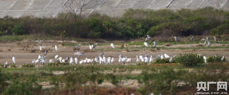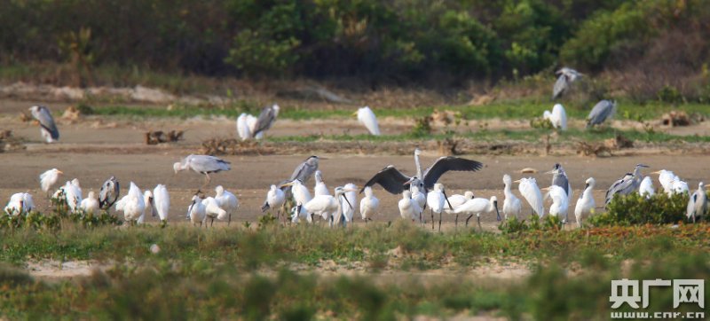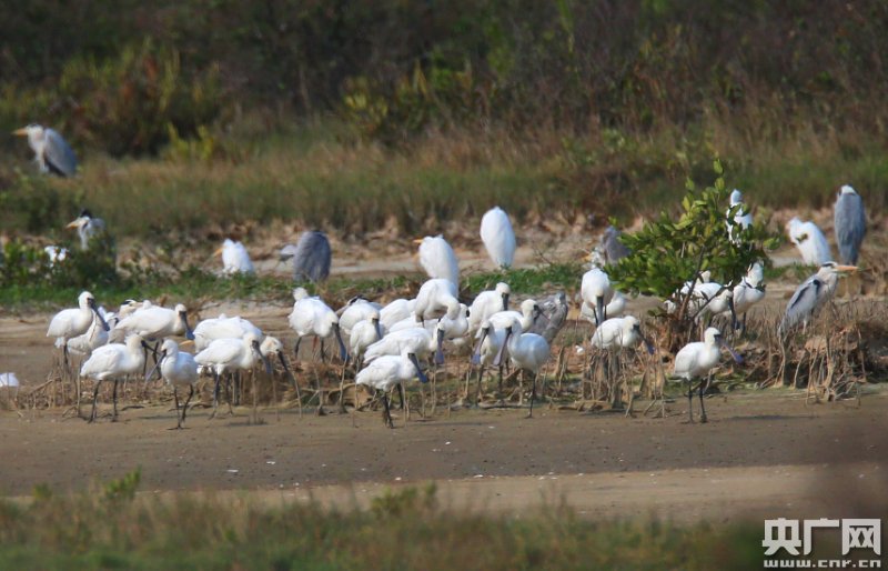 陽江首次發(fā)現(xiàn)60只全球?yàn)l危鳥類黑臉琵鷺(央廣網(wǎng)發(fā) 陳杰攝)