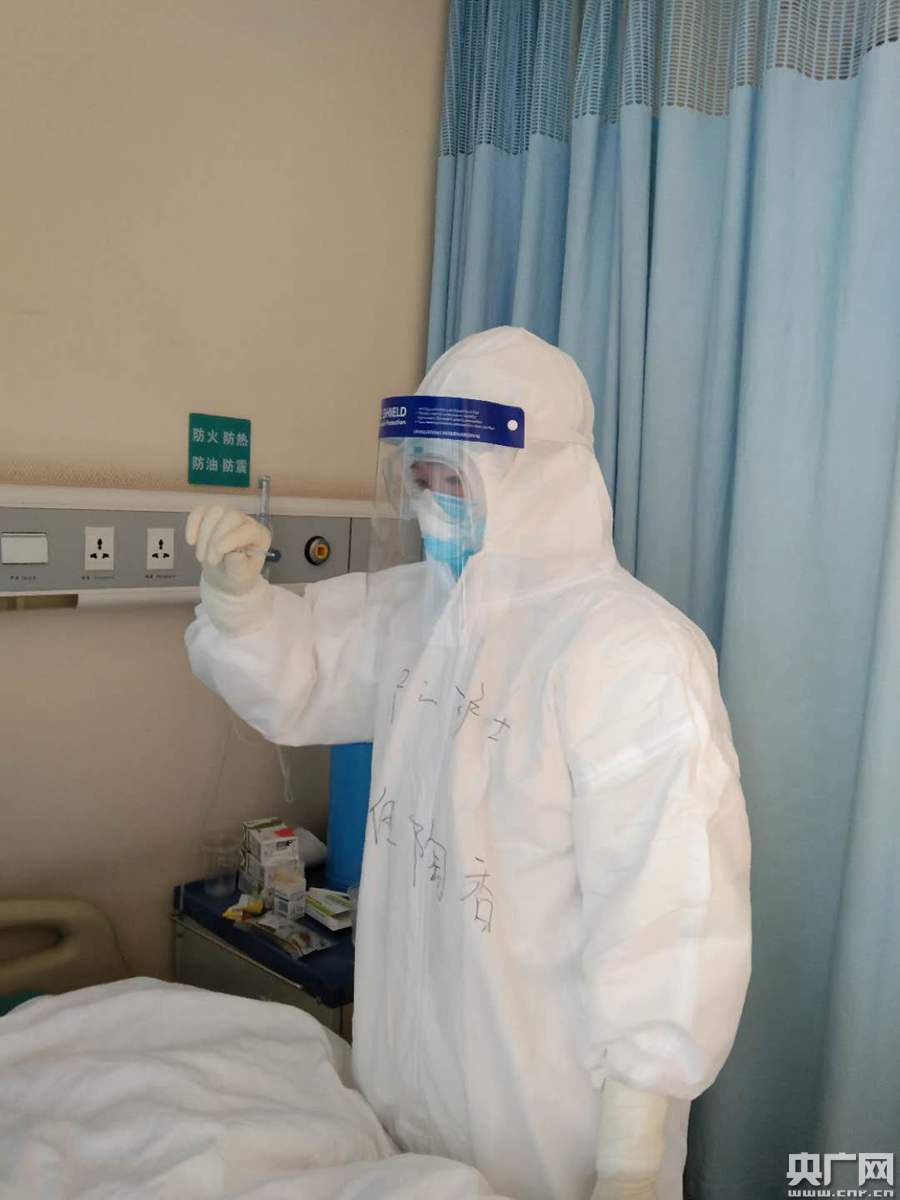 伍陶香:“不害怕是假的,戰(zhàn)士上戰(zhàn)場在槍林彈雨中穿梭,我們和病毒朝夕相處,一樣存在很大的風(fēng)險(xiǎn),但我不后悔我的決定,因?yàn)楹ε挛也鸥鼙3志次分模拍芨玫刈龊梅雷o(hù),因此我才有自信來到武漢,運(yùn)用我的所學(xué)幫助他人!