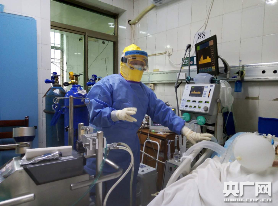 擔(dān)任重癥患者的主管醫(yī)生后,劉嬌艷2月15下午五點(diǎn),接到醫(yī)院通知,又有一個(gè)病情危重的病人需要?jiǎng)善G主管救治,晚上10點(diǎn)多,本應(yīng)該休息的劉嬌艷還是放心不下,穿著厚重的防護(hù)服又來(lái)到病房,由于病人的情況非常嚴(yán)重,她必須一刻不停地檢視屏幕、連接管、各種儀器和病人動(dòng)靜,病人的心律、呼吸、脈搏、血氧飽和度,哪一個(gè)都必須高度警惕,靜脈通路必須保持暢通,呼吸機(jī)必須暢通。