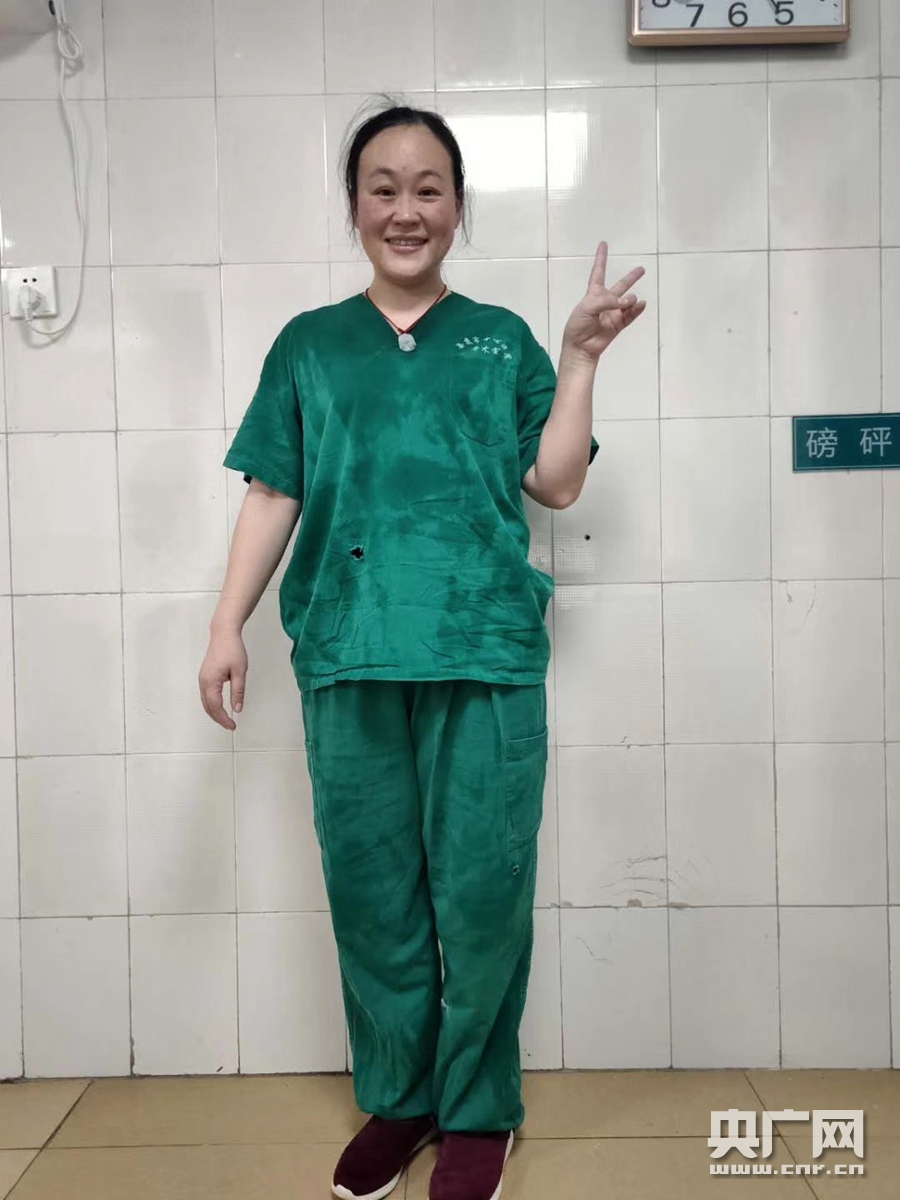 婁底市第一人民醫(yī)院呼吸科副主任醫(yī)生劉嬌艷為重癥病人治療后全身汗流浹背濕透了(央廣網(wǎng)發(fā) 通訊員供圖)
