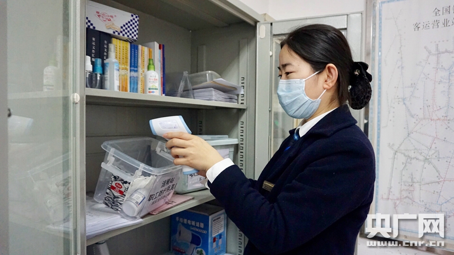 涪陵站客運(yùn)副主任晁肖利正在清點(diǎn)、核對(duì)防疫物品(央廣網(wǎng)發(fā) 通訊員供圖)