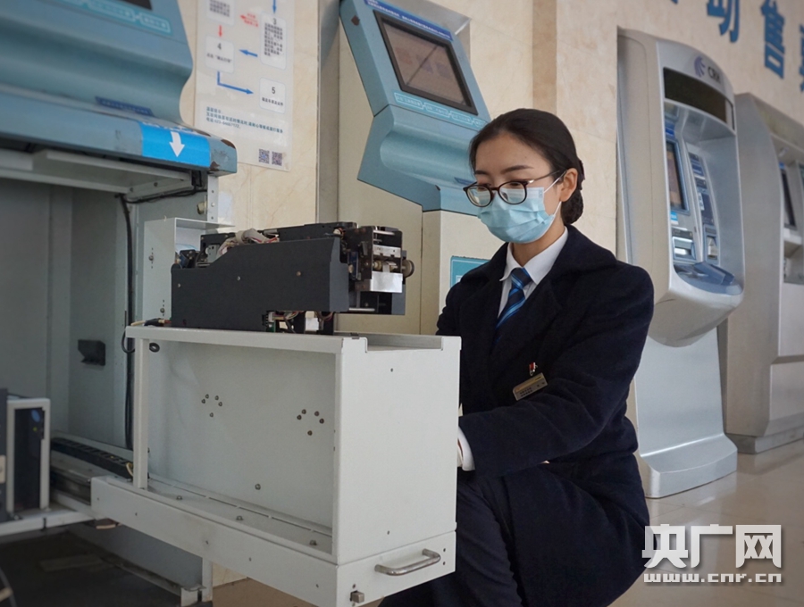 涪陵站售票員張盼正在安裝自動(dòng)售取機(jī)票卷(央廣網(wǎng)發(fā) 通訊員供圖)