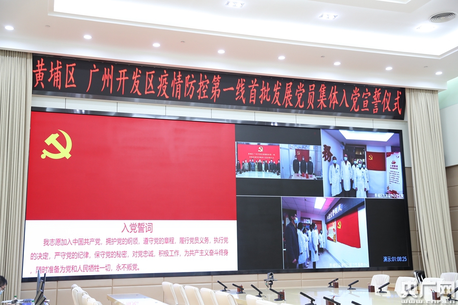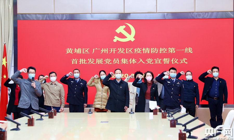 央廣網(wǎng)廣州3月5日消息(記者鄭澍 通訊員曾妮 張成 徐潔芹 許婉)2月18日,來自疫情防控一線不同崗位的邱河、金波等5名同志,依托廣州黃埔區(qū)“令行禁止、有呼必應(yīng)”綜合指揮平臺(tái),身處4個(gè)會(huì)場(chǎng)通過5G視頻連線,在黨旗面前共同作出莊嚴(yán)宣誓。據(jù)悉,疫情以來,黃埔區(qū)、廣州開發(fā)區(qū)有434人提交入黨申請(qǐng)書,一批干部擬晉升提拔。