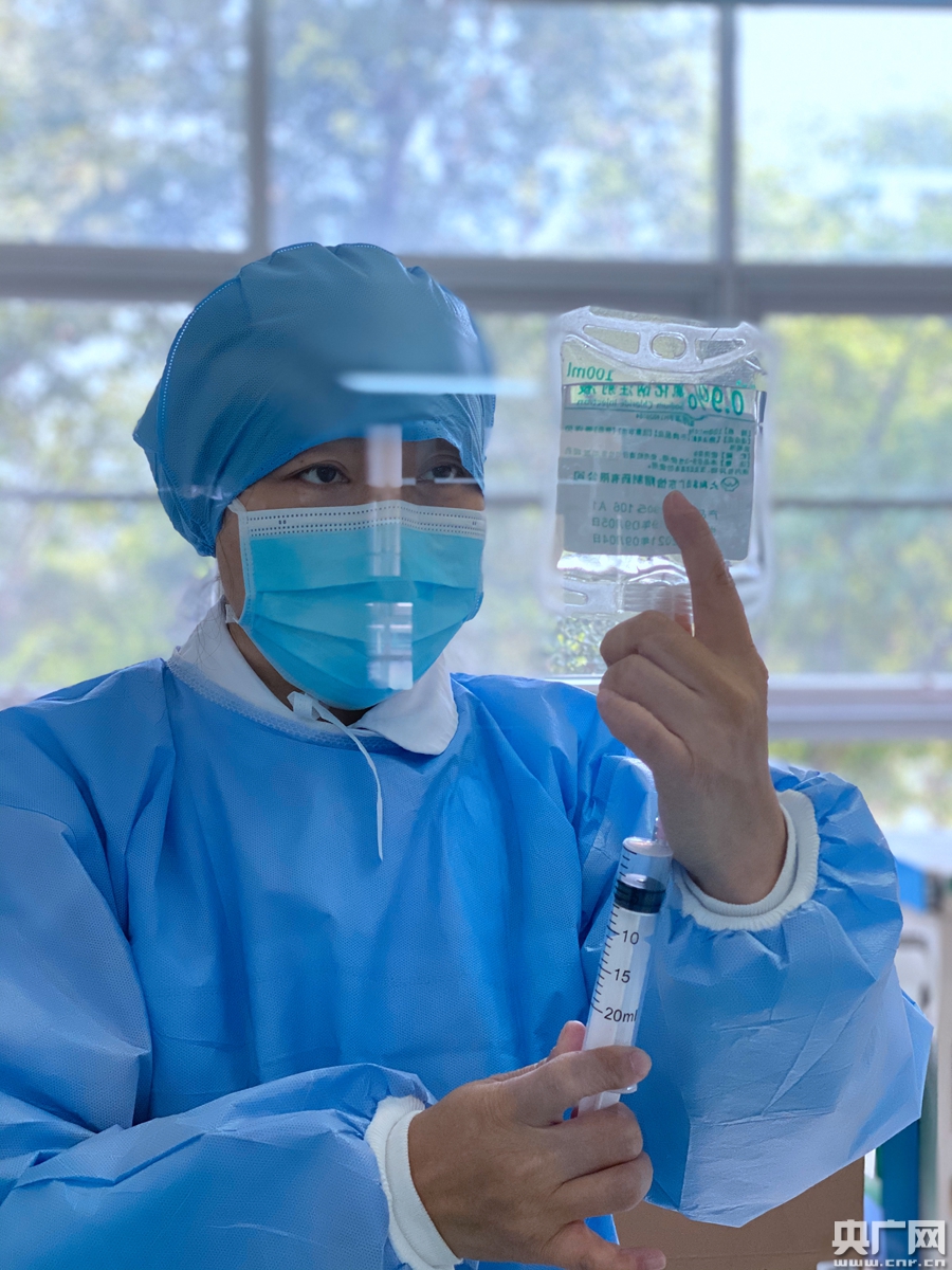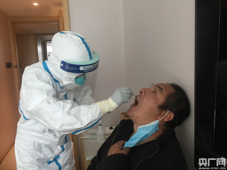 陳慶良正在給返穗人員采集咽拭子(央廣網(wǎng)發(fā) 通訊員供圖)