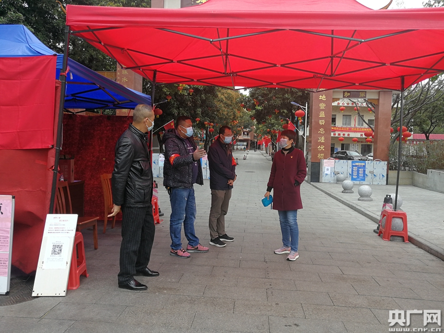 夏港街組織辦祝紅在社區(qū)檢查黨員先鋒崗的設(shè)置情況(右一)(央廣網(wǎng)發(fā) 通訊員供圖)