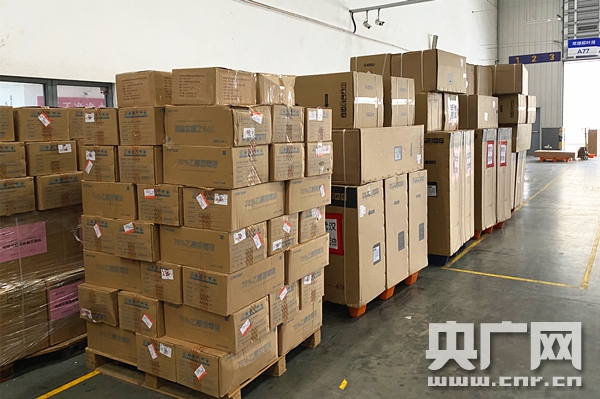 一批從國外和國內(nèi)其他城市至長沙的防疫物資準(zhǔn)備轉(zhuǎn)運(yùn)至武漢(央廣網(wǎng)記者 堯遙 攝)
