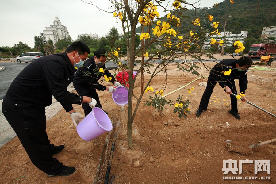 據(jù)了解,活動(dòng)期間共種植了104棵樹,分別是勒杜鵑、紫花風(fēng)鈴木和宮粉紫荊,以上樹苗將配合蘭引三號草卷形成520㎡的海島綠化地。