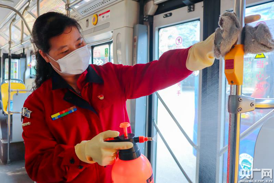 消毒(央廣網(wǎng)發(fā) 公交集團(tuán)供圖)
