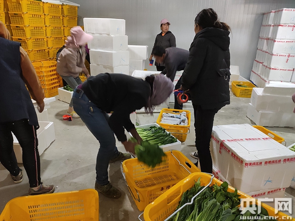 工人正在分裝甜菜心(央廣網發(fā) 劉濤攝)