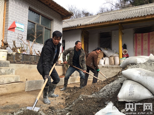 郭家村村民楊永良正在硬化自家的院子(張磊 攝)