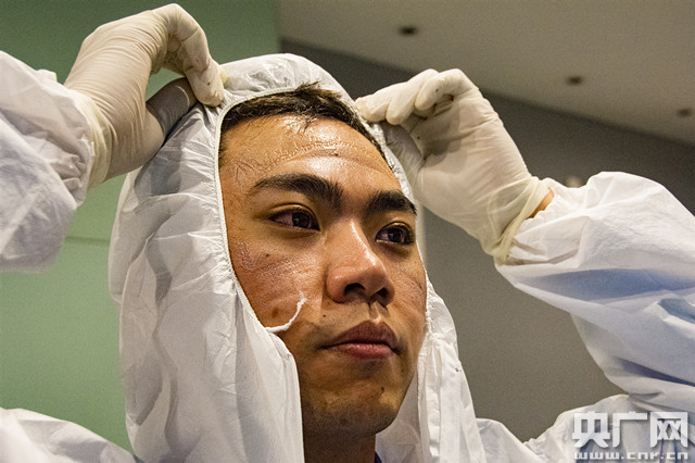 同樣堅(jiān)守崗位、投身一線的還有一名新檢查員。3月12日晚,載有234名旅客的航班中需留置進(jìn)一步觀察和送醫(yī)的有14名。該隊(duì)年紀(jì)最小的實(shí)習(xí)民警陳海,主動(dòng)承擔(dān)一線檢查的任務(wù),趕赴接送旅客最前沿最危險(xiǎn)的停機(jī)坪開展前期處置,并進(jìn)入海關(guān)負(fù)壓倉隔離場(chǎng)所負(fù)責(zé)發(fā)熱送醫(yī)旅客證件傳遞、清點(diǎn)、人證對(duì)照工作,幾個(gè)小時(shí)內(nèi)不停地往返于海關(guān)負(fù)壓倉與邊檢驗(yàn)證臺(tái)之間,連接著發(fā)熱旅客和前臺(tái)檢查員。等航班查驗(yàn)完畢,才將穿了7個(gè)小時(shí)的防護(hù)服脫下,這時(shí)已是深夜一點(diǎn)。