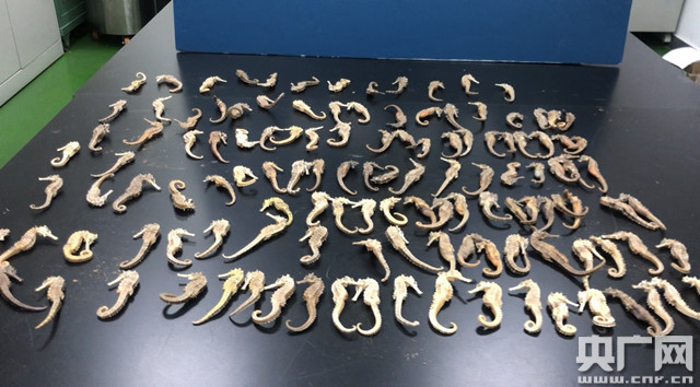 廣州海關(guān)在進境郵遞渠道分別查獲瀕危物種海馬干128尾(央廣網(wǎng)發(fā) 王嘉媚 攝)
