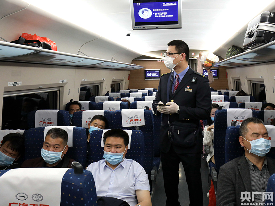 同時(shí),乘務(wù)員及時(shí)提醒旅客戴好口罩,盡量減少走動(dòng)次數(shù),并嚴(yán)格按照疫情防控要求為旅客測量體溫;保潔員增加電茶爐、洗臉間、各位置扶手等位置的擦拭消毒次數(shù),通力協(xié)作,把疫情防控工作落實(shí)到位,確保旅客的乘車安全。