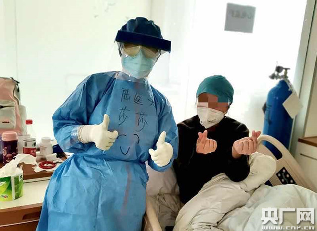 李莎莎為新冠肺炎患者加油鼓勁(央廣網(wǎng)發(fā) 通訊員曾理 攝)
