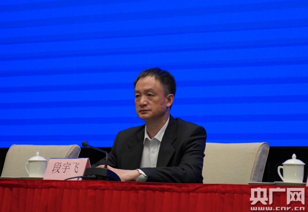 圖為新聞發(fā)布會(huì)現(xiàn)場(chǎng)。段宇飛介紹廣東疫情防控相關(guān)情況。(央廣網(wǎng)記者 鄭澍 攝)