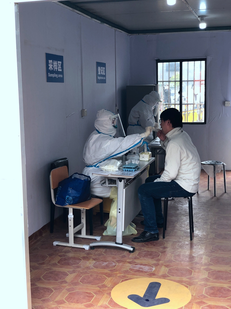 同時(shí),在有關(guān)街道鎮(zhèn)的支持配合下,選擇和設(shè)置符合本市有關(guān)要求的指定采樣點(diǎn),在指定采樣點(diǎn)設(shè)置通風(fēng)良好、單向進(jìn)出的采樣帳篷;并留有足夠的空間供被采樣人員排隊(duì),避免人員聚集。區(qū)衛(wèi)健委組織區(qū)中心醫(yī)院,挑選經(jīng)驗(yàn)豐富的采樣人員,并進(jìn)一步加強(qiáng)個(gè)人防護(hù)、消毒隔離的培訓(xùn);區(qū)中心醫(yī)院也做了充分準(zhǔn)備,安排20名醫(yī)務(wù)人員組成4支采樣隊(duì)伍。