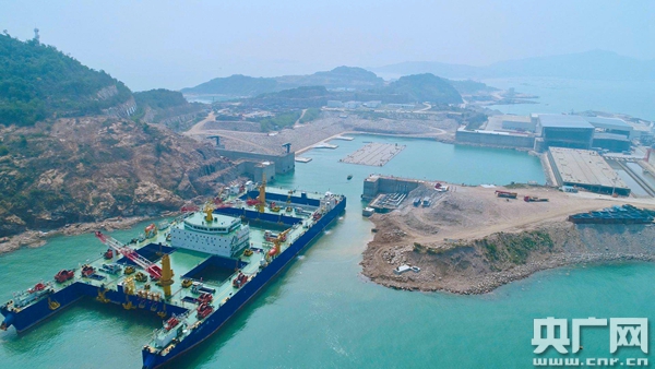 深中通道世界首制沉管隧道浮運安裝一體船進塢。(央廣網(wǎng)發(fā) 通訊員供圖)