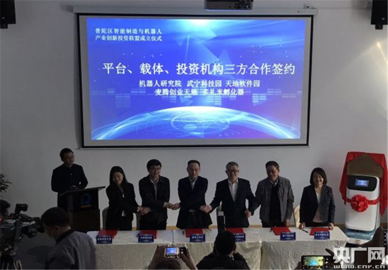 儀式上,普陀區(qū)科委黨組書記、主任李文波和普陀區(qū)智能制造與機(jī)器人產(chǎn)業(yè)創(chuàng)新投資聯(lián)盟理事長、上海普陀科技投資有限公司總經(jīng)理陳很榮共同為普陀區(qū)智能制造與機(jī)器人產(chǎn)業(yè)創(chuàng)新投資聯(lián)盟揭牌。上海機(jī)器人產(chǎn)業(yè)技術(shù)研究院院長鄭軍奇介紹了上海機(jī)器人研發(fā)與轉(zhuǎn)化功能型平臺建設(shè)情況,并與投資聯(lián)盟、天地軟件園等合作機(jī)構(gòu)代表簽約。