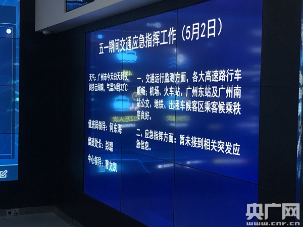 廣州市交通信息指揮中心工作人員陳宇興表示,廣州市交通運(yùn)輸部門預(yù)測返程高峰將會出現(xiàn)在假期第四日(5月4日)15時-21時,假期第五日(5月5日)13時-23時兩個時段。