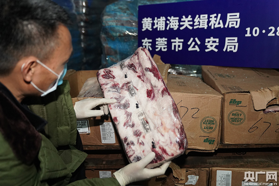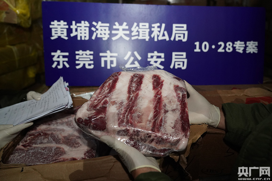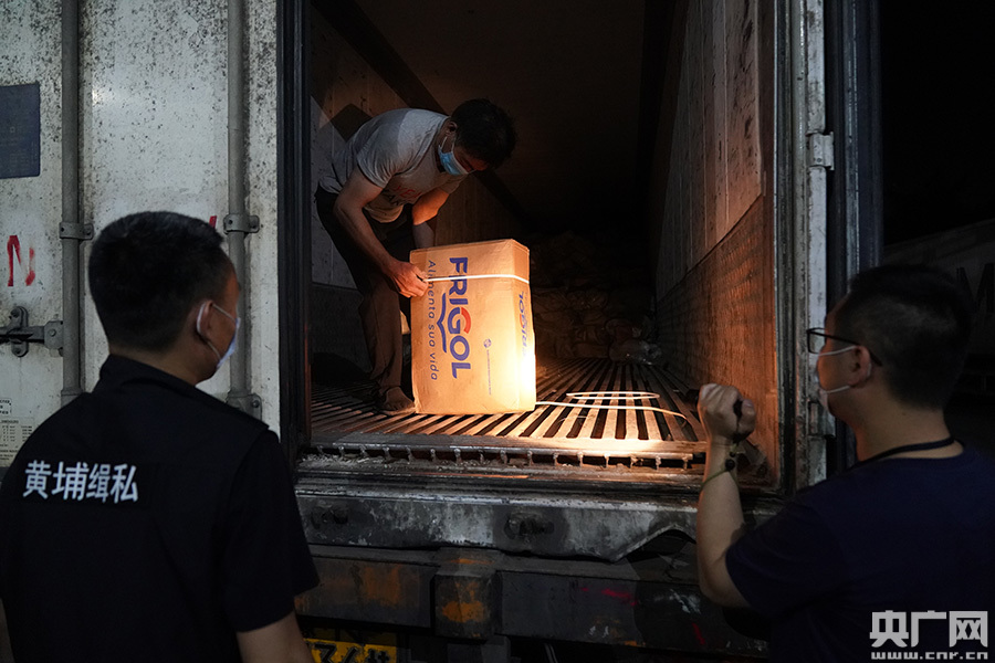 黃埔海關(guān)聯(lián)合東莞市公安局現(xiàn)場(chǎng)查獲的走私凍品(央廣網(wǎng)發(fā) 謝政 攝)