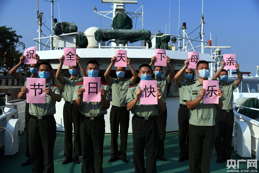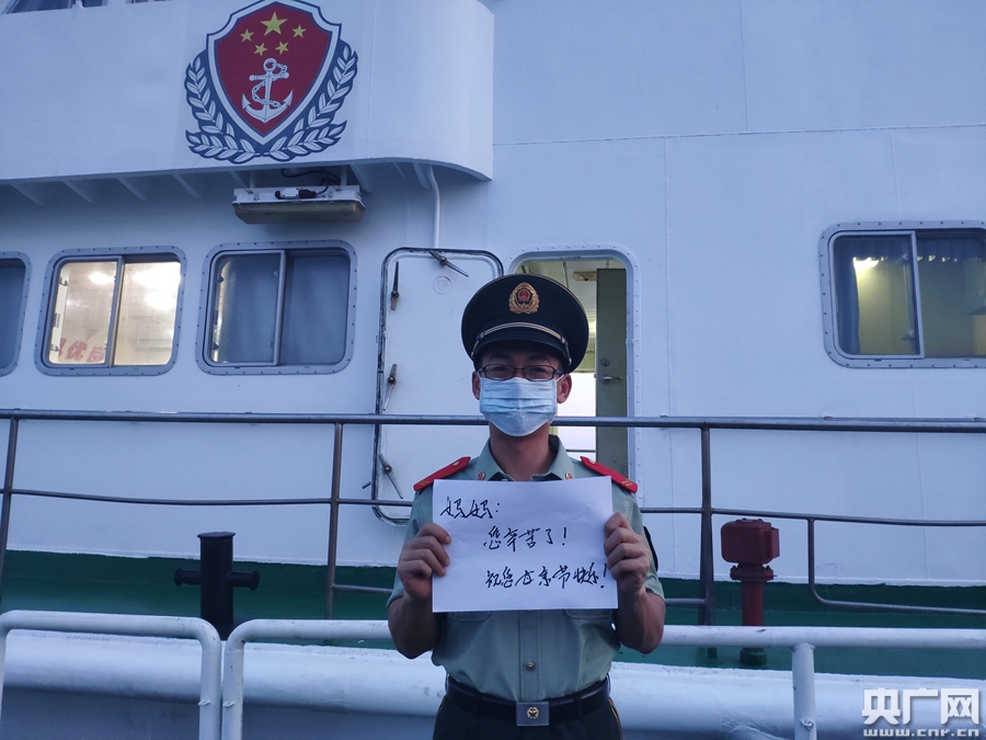 在海警大洲艇上,海警人以集體的名義向母親送上節(jié)日祝福,祝福所有的媽媽身體健康,節(jié)日快樂(lè)。