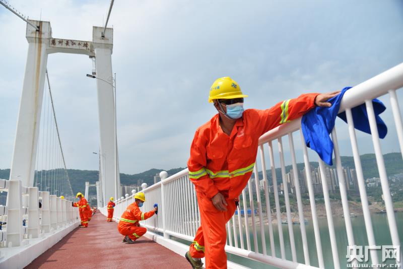 工人對橋梁進(jìn)行維護(hù)(央廣網(wǎng)發(fā) 通訊員供圖)