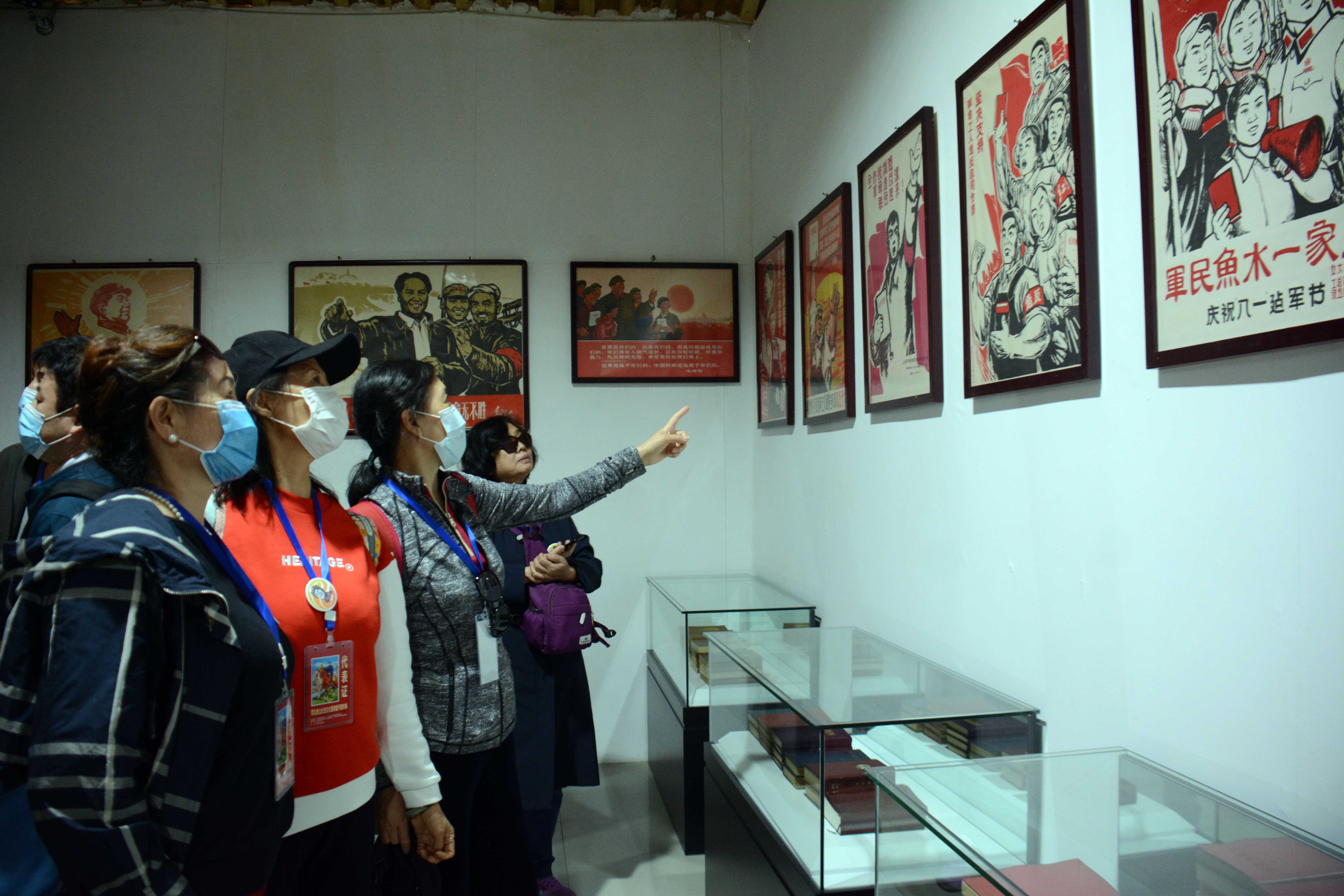 游客在虎山紅色文化陳列館觀看展出作品(曲陽縣委宣傳部 郭英焜 攝)