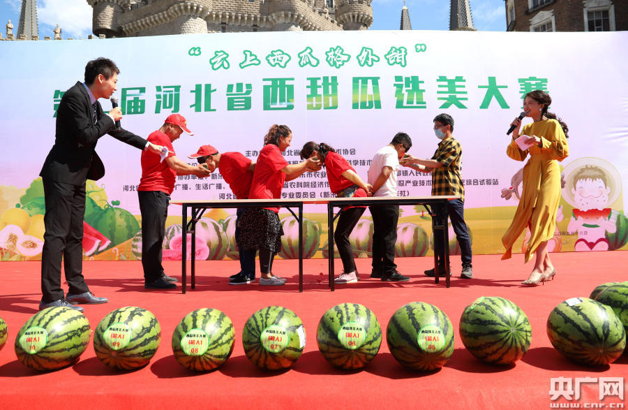 央廣網(wǎng)石家莊5月18日消息(記者孟曉光 見(jiàn)習(xí)記者張說(shuō)地 通訊員王民)疫情難當(dāng)大賽情,“云上”西瓜格外甜。5月18日,第二屆河北省“西甜瓜選美大賽”在新樂(lè)市河北美術(shù)學(xué)院南廣場(chǎng)舉行。此次大賽由河北省農(nóng)村專(zhuān)業(yè)技術(shù)協(xié)會(huì)主辦,新樂(lè)市人民政府、河北科技報(bào)社、石家莊市科普中心承辦。