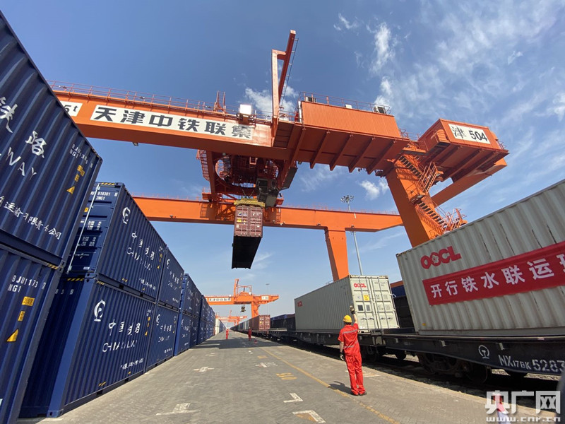 中鐵天津集裝箱中心站是華北地區(qū)唯一到發(fā)線兼貨物線的集裝箱作業(yè)場(chǎng)站,裝車完畢后可直接上線運(yùn)行。據(jù)中心站負(fù)責(zé)人張金超介紹,這得益于天津海關(guān)開辟綠色通道,做到貨物“隨到隨驗(yàn)、合格即放”,提升通關(guān)放行效率,通過采用“船邊直提”,充分利用集裝箱在途時(shí)間辦理通關(guān)手續(xù),船舶離港后集裝箱即可放行直接運(yùn)到中心站,大大提高鐵路疏港效率。